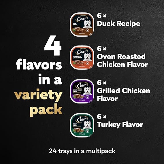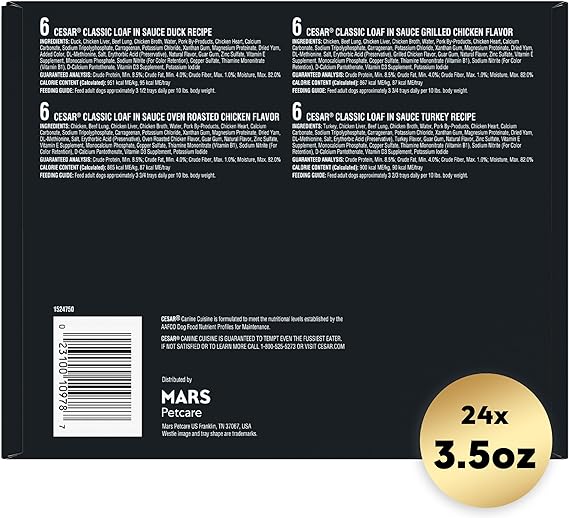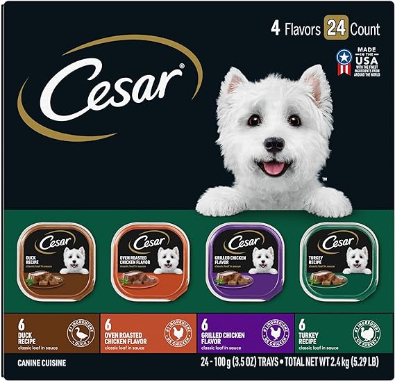 Made with Real Poultry: Made with real poultry, Classic Loaf in Sauce complements any dry food or stands alone as a tasty meal Made in the USA with the finest ingredients from around the world Quality Recipe: Contains no fillers, no artificial flavors, and is formulated without grains (Trace amounts may be present due to cross-contact during manufacturing) Peel Away Seals: CESAR Classic Loafs gourmet soft dog food is served in convenient trays with easy, peel away seals. Deliciously Complete Meal: This single serve, complete and balanced meal for adult dogs makes every mealtime delicious Contains twenty-four (24) 3.5 oz. easy peel trays of CESAR Wet Dog Food Classic Loaf in Sauce Poultry Variety Pack