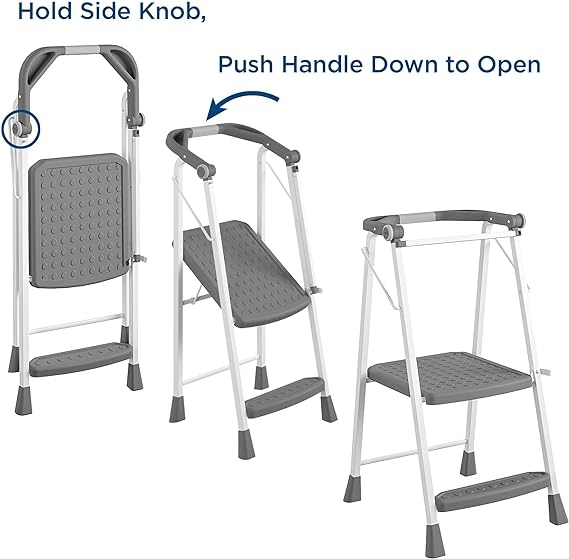 Multifunctional: Sits flush to counter allowing easy reach for the entire family Easy to fold, stores flat: Uniquely foldable for easy storage Safe and Secure: Rear safety bar Comfortable: Extra large, slip-resistant platform step ANSI Type 2: 225 lb load capacity