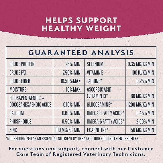 CHICKEN MEAL IS THE FIRST INGREDIENT providing essential protein and amino acids to help maintain strong muscles; Peas, oat groats, and barley are included as a healthy and rich source of fiber for digestive health; Contains (1) 24-Pound bag TARGETED NUTRITION Formulated with quality protein, wholesome grains, added vitamins, and a special fiber blend to help your dog feel full and satisfied ULTRA REDUCED CALORIES Scale back on the calories, not the taste! Made with the same whole ingredients your dog loves, this delicious, reduced calorie formula has fewer calories to help your dog maintain a healthy weight NUTRITION FOR EVERY TYPE OF DOG Any dog can enjoy our delicious recipes, not just dogs with sensitive stomachs, irritable skin or allergies; Our purposefully crafted formulas reduce the number of ingredients without sacrificing taste or nutrition SAFETY & TRANSPARENCY Natural Balance's 'Feed with Confidence' program tests every batch of food from start to finish, ensuring safety with every bite; Validate bag on our site or call our Customer Care Team of Registered Veterinary Technicians
