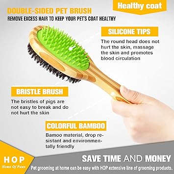 HOP Short Hair Dog Brush Pet Brushing Grooming Comb for Short Hair Coats Detangling and Shedding Coat Hair Remover Two Sided Removing Dirt & Loose Hair for Dogs Home of Paws