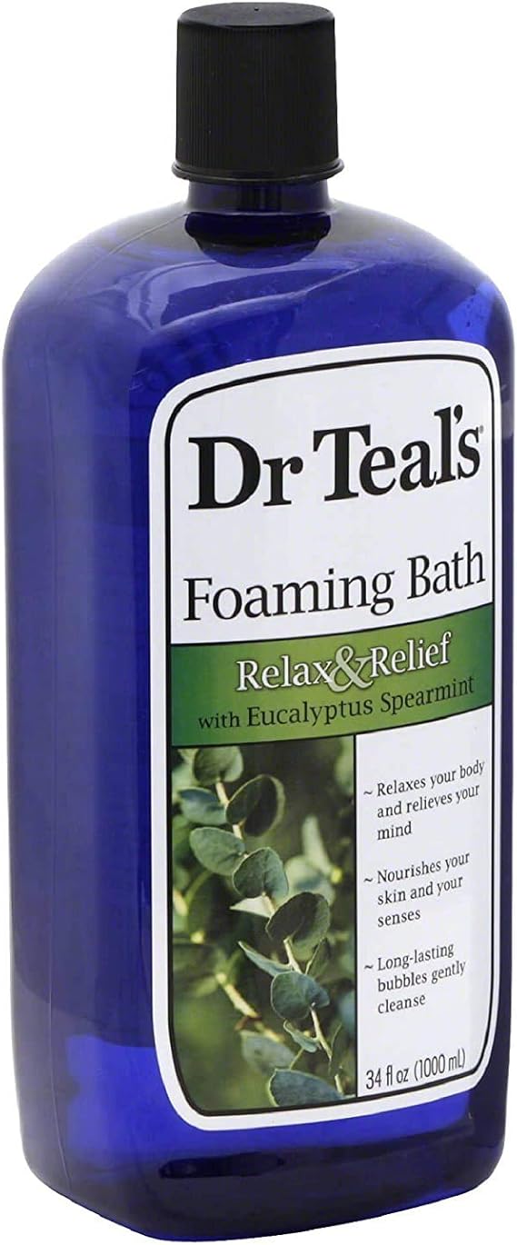 Dr Teal’s Soothe & Sleep with Lavender Foaming Bath utilizes essential oils to calm the senses and help provide relief from stress. Eucalyptus stimulates the senses and Spearmint is a restorative for the body. All Dr Teal's Foaming Baths contain Epsom Salts to help revitalize tired, achy muscles. Creates a luxurious and soft lather and transforms your bathtub into a relaxing spa. One 34 fl oz bottle of Lavender Foaming Bath and one 34fl oz bottle of Eucalyptus and Spearmint Foaming Bath, for a total of 68 fl oz.