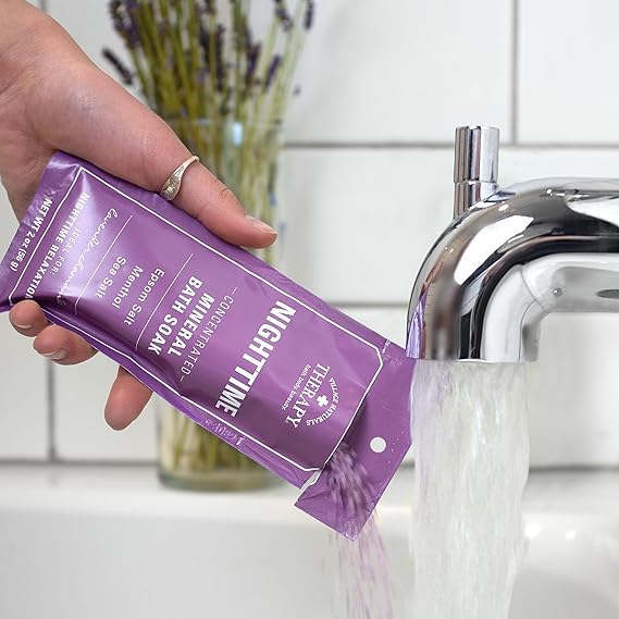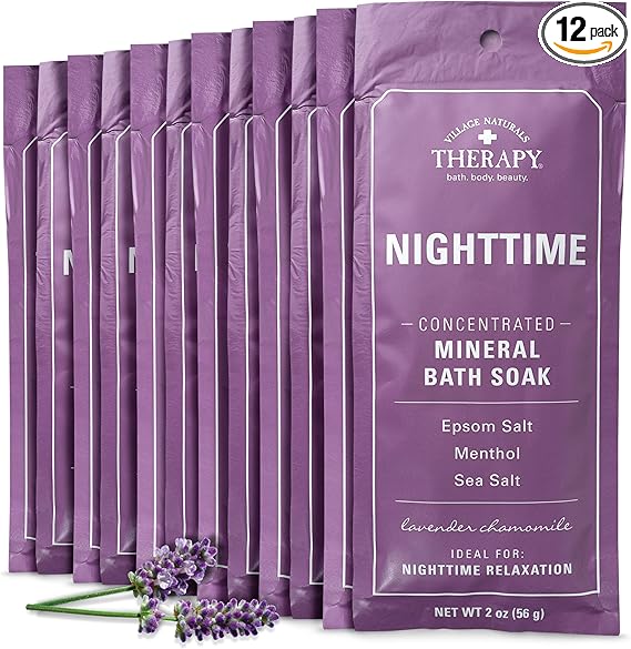 ON-THE-GO RELIEF: Relaxing your achy body and tired mind before bed can be a challenge – especially when you are constantly on the move. With our convenient, single-use Mineral Bath Soak packets, you can relax and unwind while on-the-go. Take a dip in the tub with a powerful blend of essential oils and extracts including Lavender, Chamomile, and cooling Menthol. POWERFUL INGREDIENTS: The Aches & Pains Nighttime Relief Soak is formulated with key ingredients that can help you unwind at the end of a long day. Let the calming qualities of Lavender, Chamomile, and Menthol relax your muscles and prepare you for a good night’s rest. The combination of Sea Salt and Epsom Salt helps to draw out impurities and ease aches and pains. EASY TO USE: Winding down before a restful night of sleep has never been easier. Simply sprinkle 1 packet (about two ounces) under warm running water for a soothing soak in the tub. Don’t have time for a full bath? Pour the contents of the packet into a tub with a shallow amount of warm water and restore your tired feet in a relaxing, rejuvenating footbath. MADE WITH CARE IN THE USA: All Village Naturals Therapy products are proudly made in the USA, and never tested on animals.