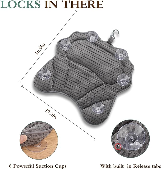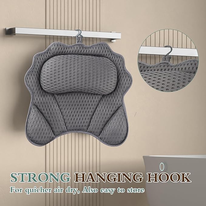 Polyester ????【Upgrade & Softness】compared with 3D air mesh technology, 4D Air Mesh Technology was upgraded with better breathability and ventilation, higher resilience and more smooth surface. It is not easy to be out of shape, quicker dry, no bad odor. With more smooth surface, you could enjoy a more comfortable touch. ????【A truly ergonomic bath pillow】ergonomic custome designed headrest brings head and neck max. comfort and relaxation. Extra thick shoulder and back padding brings shoulder and back max. support and relaxaion.Fits all Bathtub, Spa Tub. ????【Powerful suction cups】 Equipped with 6 powerful suction cups, which can prevent your tub pillow from sliding and moving normally. ????【Feels like leaning back into a warm hug 】The ultra-soft, thick padding of our luxury bathtub pillow gives way to cushion your head while the longer back support of our spa pillow for bathtub adds the perfect comfort for your back and shoulders. At this time: Turn on relaxing music, light candles, and hold a glass of red wine. It feels like life has never been so wonderful and comfortable! ????【Easy to use and easy to store】With hooks, you can hang the bath pillows on the towel rack after the bath, or hang the bathrobes in the bathroom. It dries quickly and maintains an fresh smell. Perfect gift for women, men on birthday, Christmas, Mother's Day, wedding anniversary, Women's Day, Valentine's Day, Thanksgiving Day.