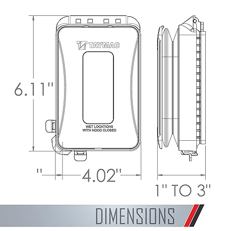 TayMac ML450W White Polycarbonate 1-Gang Weatherproof In-Use Expandable Electrical Outlet Cover for Home Improvement, 1-in. to 3-in. Deep Outdoor Outlet Cover for Electrical Box, NEMA 3R