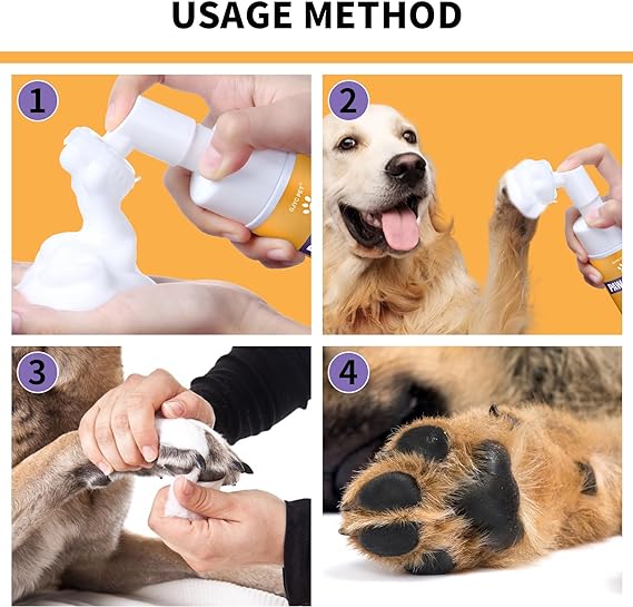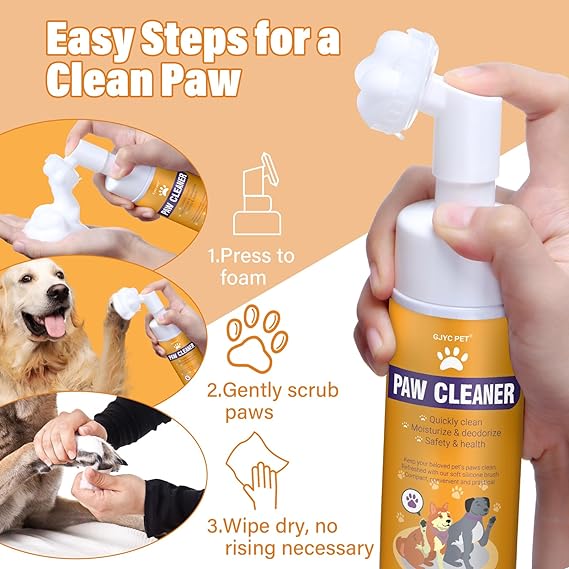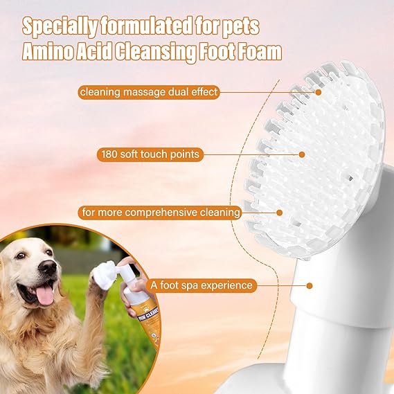 Paw Cleaner for Dogs and Cats,Magic Foam - Clean Paws No-Rinse Foaming Cleanser-Dry Shampoo, Foot Cleaner Brush - with Rose Extract, Odor Control Wash - Good for Puppy