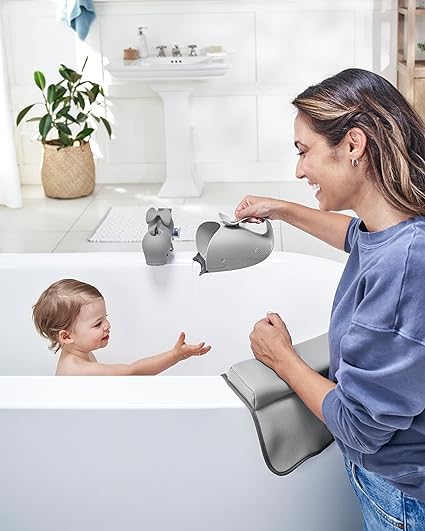 Bathing baby is a breeze with the help of our handy bathtime helper kit Packed with four of our popular Moby bath basics in decor friendly grey, the four piece set includes a rinser, soft spout cover, padded elbow rest and kneeler Now parents can be just as comfy as little ones during tub time Makes a great baby shower gift for first time parents, too BPA free, Phthalate free A great value purchased as a set, instead of separately Four piece kit includes: Bath Rinser, Bath Spout Cover, Bath Kneeler, Bathtub Elbow Rest