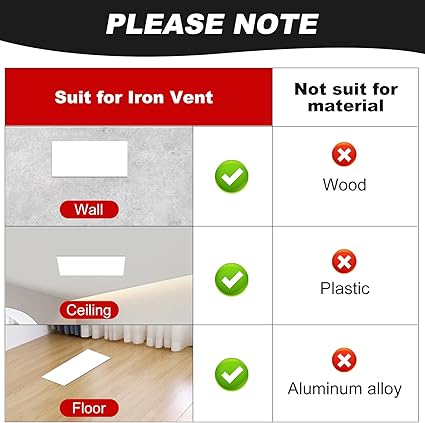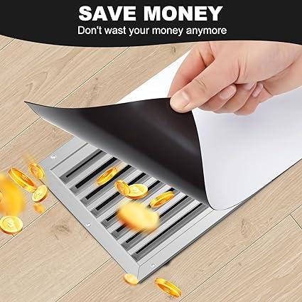 ????【SIZE AND QUANTITY】 We have customized( 8"X 15.5", 2 sheets) magnetic vent covers for you, which is suitable for most air standard register. you can easily cut it into any shape to completely seal the air. Our magnetic ventilation covers are versatile, ideal for indoor or outdoor HVAC and RV use. ????【HIGH QUALITY】We magnetic vent cover use high-quality anisotropic rubber magnet materials, Our air vent covers have stronger magnetism compared to regular rubber magnets, providing better sealing and preventing them from falling off. The other side with matte white PVC surface that is not easily scratched and is waterproof, which can effectively conceal the ventilation openings. ????【EASY TO USE】 Our magnetic vent covers for wall are highly flexible and easy to cut. you could effortlessly shape them to any desired size or form, then use magnet vent cover to directly adsorb onto iron vent and completely cover it. Suitable thickness and magnetism can easily adsorb and remove. Please verify with a magnet that your vents are iron and not stainless steel, aluminum, wood or plastic. ????【MULTIPURPOSE&MULTIFUNCTION】 With these ceiling vent covers, effectively help you redirecting air and also significantly reduce the heating and air conditioning costs associated with controlling the temperature in these spaces. This floor register vent covers will keep small living creature climbing out of vent, also prevents small items such as coins from falling into the vents. ????【HIGH QUALITY AFTER-SALE SERVICE】 Our Thaibear team dedicated to provide our customers with the highest quality magnet products and the best customer service. If not completely satisfied with our magnetic vent covers for home floor, please contact us and we will do our best to meet you.
