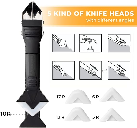 【Tips】Here's a quick tip for achieving that smooth, one-handed gliding sensation with your grout tool: consider loosening the screws on the backside ever so slightly.While a bit of loosening can enhance the user experience, be careful not to overdo it. We're aiming for a perfect balance, so keep it within the range where the tool feels comfortably snug in your hand, providing that silky-smooth maneuverability. 【Professional Design】 - Saker silicone caulking tools could combine 3 functions into 1,including internal angle scraper,flat angle scraper,silicone smoother,It can help you remove the seal and re-sealing and repair the gap and clean the residual glue easily. 【Durable Material】- Saker 3 in 1 caulking tool has sharp hard stainless steel blade for long-lasting strength removing;Nice silicone trowel for the removal of bumps and dents surface;White silicone pads for smooth application of new silicone! 【Effectiveness】-Saker 3 in 1 sealant finishing tool grout remove scraper with versatile tools with many uses,easy to rip the old caulk and smooth the caulk well.No need for masking tape,it is convenient and quick to use and save time. 【Multiple Usage Scenarios】- Saker caulk remover glass glue angle scraper is a perfect tool kit;Great ideal for home,kitchen,bathroom,floor,tank,window,sink joint,frames seal and so on.The smart dimension is applicable for interior and exterior caulking. 【Perfect Choice】- Saker silicone caulk remover is a great product for removing and spreading caulk,improving the agglutinating quality and the aesthetic sense of surface.