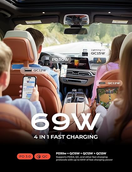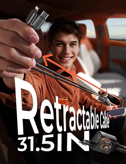 ⚡ Ultimate Multi-Device Charging Solution: The LISEN Retractable Car Charger 4 in 1 offers a comprehensive solution for car organization accessories by allowing simultaneous charging of multiple devices with its dual USB ports and multi-functional cable. Perfect for both Android and iPhone users, it ensures a neat and organized car interior. ???? 69W 4 Port Charger: This powerful USB car charger features PD 30W USB-C and 12W USB Lightning cables, a 15W USB-C port, and a 12W USB-A port, enabling efficient charging for up to four devices simultaneously. Ideal for those who need a versatile and reliable car charger cord solution for fast car charging. ????Introducing the LISEN Retractable Car Charger – your ultimate travel companion for seamless charging on the go:With a compact length of 2.14 inches and a width of 1.31 inches, this sleek charger easily fits into any car's interior. Its retractable design ensures discretion when not in use, with an exposed height of just 3.17 inches. Despite its small size, the 4 in ONE Retractable Car Charger stands tall with an overall height of 5.35 inches, offering powerful performance to keep your devices charged and ready. ???? Adjustable 180-Degree Charging Plug: The retractable charging plug can be adjusted left and right by 180 degrees, providing secure and stable charging even on bumpy roads. This feature ensures easy use and compatibility with various vehicle interiors, making it a reliable car charger USB C option for long journeys. ???? Comprehensive Compatibility: This car charger is compatible with iPhone 15/14/13/12 series, making it perfect for iPhone 15 car charger, iPhone 14 car charger fast charging, and iPhone 13 car charger fast charging needs. It also works with other USB-C and USB-A devices, providing versatile charging options for your vehicle. ❤️ Sustainable and Reliable Design: LISEN operates sustainably, maintaining high environmental and social standards. The durable design of this retractable charger for car reduces the need for replacements, supporting a more eco friendly approach.