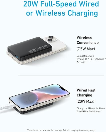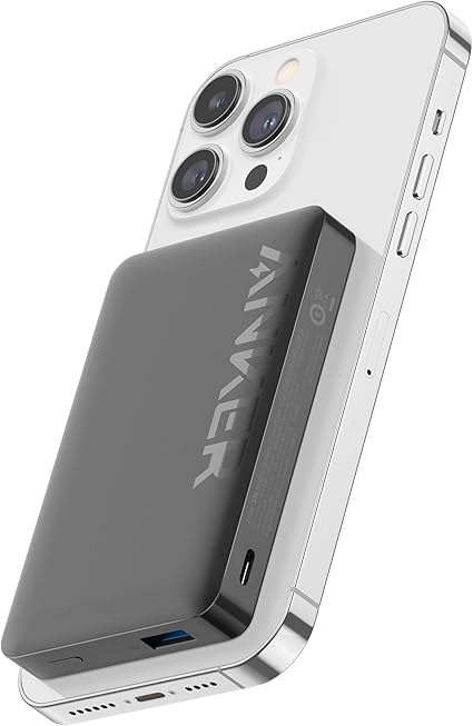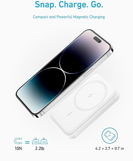 Massive 10,000mAh Capacity: Get up to 22 hours of extended iPhone 14 video playtime with the remarkable 10,000mAh battery. Charge Wirelessly and Magnetically: Enjoy 7.5W wireless charging with an impressive 10N magnetic force—surpassing the original MagSafe charger. Sleek and Portable: Seamlessly fit this power bank into your pockets or bags, thanks to its compact dimensions of 4.2 × 2.7 × 0.72 inches. Charge While Recharging: Charge your iPhone and recharge Anker 334 Magnetic Battery simultaneously. No more waiting for full power. What You Get: Anker 334 MagGo Battery (PowerCore 10K), 2 ft (60 cm) USB-A to USB-C cable, welcome guide, our worry-free 18-month warranty, and friendly customer service.