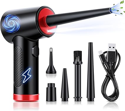 Compressed Air with Powerful 3-Speed Airflow: Equipped with three adjustable speed settings, this electric air duster delivers powerful airflow to meet a variety of cleaning needs. Easily switch between speeds for light dusting or deep cleanin Air Duster is Compact and Portable: Designed with a mini size, this cordless air duster is easy to handle and store. Its lightweight and portable design make it perfect for use at home, in the office, or on the go. Canned Air with Versatile Applications: Ideal for cleaning keyboards, cameras, electronics, and delicate instruments. This versatile air blower is also great for removing dust from hard-to-reach places like vents, fans, and window sills. Electric Air Duster is Fast Charging: Enjoy the convenience of quick recharges with the included USB charging cable. The fast-charging capability with 10w charging power ensures that your air duster is always ready for immediate use. More Cost-Effective: Replace traditional air can spay with this rechargeable compressed air duster. It provides a sustainable and cost-effective solution.