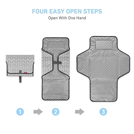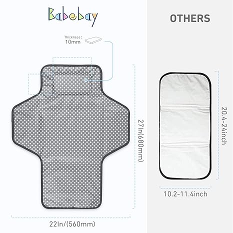 MORE LONGER & WIDER ACTIVE SPACE FOR YOUR BABY: Our portable changing pad is large enough for all babies(Extand Size App 27x22 In), built-in a soft cushioned pillow for great comfort and convenience. The portable baby changing station is very lightweight and compact when folded so you can change your baby’s diaper anywhere EASILY USE WITH ONE-HAND-ONLY PORTABLE BABY CHANGING PADS: A compact, lightweight design, these diaper changing mats fold up like a small purse. With a Diaper Clutch Strip for one-hand operation MADE OF WATERPROOF MATERIAL, MORE EASY TO CLEAN: Baby Changing Pad is made of Waterproof 420D Oxford Fabric (Surface) and PEVA material (Inner), the diaper changing mat can protect your baby from dirty surfaces and can easily be cleaned FRIENDLY MATERIALS, WIPE CLEAN MORE EASY: Made of BPA free friendly materials, very comfortable and skin-friendly for kids and adults. The design of this Changing Pad is like no other, it is perfect and unique PERFECT BABY CHANGING GIFTS FOR NEW MOMS ESSENTIAL: Diaper changing mat has a fashion design. It is essential for every modern and expecting parent. Get this baby changing mat for your friend’s baby shower or to congratulate her on the baby’s birth