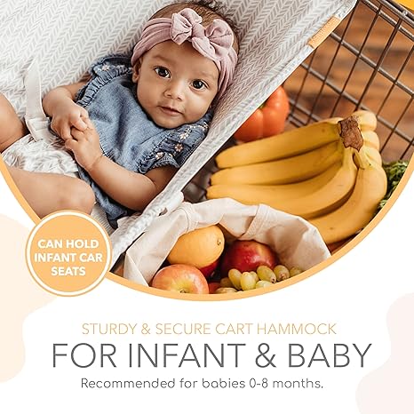 Cotton MAKES SHOPPING EASY - Running grocery errands with a baby can be a real challenge. With our baby cart hammock, you can finally shop hands-free! This innovative product is designed to securely hold your baby in a hammock-style seat. So, you can browse and pick up items without worrying about your little one. COMFORTABLE & DURABLE - Made from 97% cotton and baby-safe fabric, this baby shopping hammock is cozy for your little one. Its double-layer upholstery fabric is durable and can be easily washed. This shopping cart seat is a great way to let your little one relax in comfort while you shop. CRADLES YOUR BABY - Most shopping carts don't have a designated place to put your baby. Binxy Baby to the rescue! Our baby hammock cradle uses premium plastic clips and Velcro to ensure that your baby stays securely fastened in the hammock at all times. FOR ON-THE-GO PARENTS - The Binxy Baby shopping cart seat for toddlers is an excellent solution for busy parents. Its small size and flexible fabric make it easy to store away in a purse or backpack. It’s simple to assemble, and you can always have it with you wherever you go! SAFE FOR YOUR BABY - Our cart baby hammock has passed numerous safety tests and certifications. It’s fully compliant with the US Consumer Product Safety Improvement Act (CPSIA). You can be confident that your little one is safe and secure while using our shopping cart baby hammock.