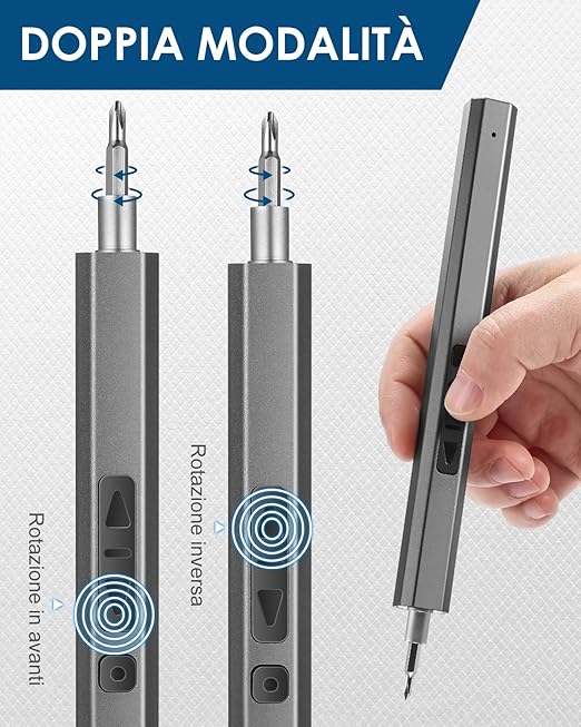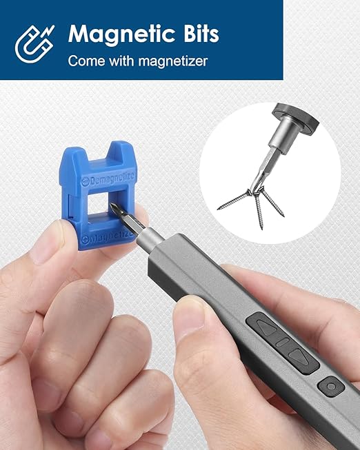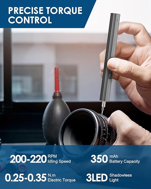 Dual Mode & F/R Button - Vastar electronic screwdriver is designed with 200-220r/min rotation speed, supporting both manual mode (torque of 3N.m) and electrical mode (torque of 0.25-0.35N.m). The forward and reverse button of Vastar cordless screwdriver meets your requirement of tightening or loosening screw bits with just a single press for higher efficiency. Long-lasting Battery - Powered by 350mAh rechargeable lithium battery, it takes Vastar rechargeable screwdriver 2-5 hours of full charge time. Besides, the universal attached USB-C charging interface makes the charging more convenient. Magnetic Design - Vastar precision electronic screwdriver and bits are all magnetic for easy attachment. With an extra magnetizer, the drill bit’s magnetization can be increased when it touches here. 152 in 1 for Multipurpose - Vastar mini precision screwdriver set consists of 119-piece CRV steel bits, 1 electric screwdriver, 1 manual screwdriver, 1 extension rod, 6 spudgers, 1 flexible shaft, 1 brush,1 SIM card eject pin, 1 magnetic pad, 1 tweezers, 1 converter, 1 cleaning cloth, 15 triangle spudgers, 1 suction cup,1 magnetizer, 1 charging cable, 1 storage bag, 1 user manual, which are able to assemble and disassemble most electronics products, small household appliance, glasses, drones, clocks, controllers, toys and models, etc. Ergonomic Design - Vastar portable electrical screwdriver embeds 3 shadowless LED light, which will illuminate the working area and dim corners, allowing you to maintain a clear vision in the darkness.