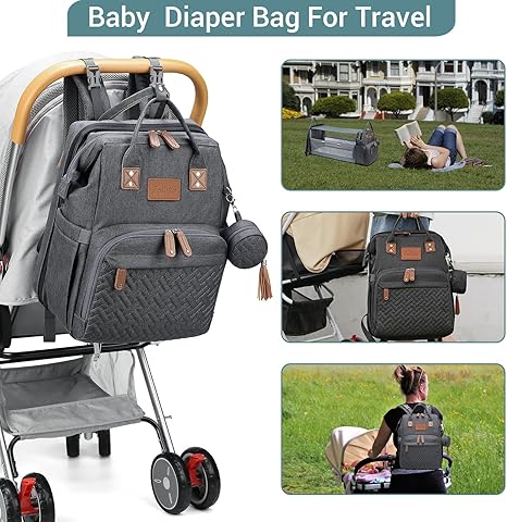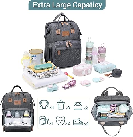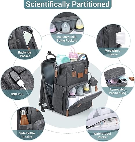 【Large Capacity Multifunction】 Our Diaper Bag Backpack is designed with 16 pockets, scientifically partitioned to hold all essential items such as diapers, creams, wipes, and more. It also features 3 insulated pockets for bottles, keeping them warm or cool as needed. With its generous capacity, this backpack can even accommodate a laptop or breast pump. Soft Changing Pad:makes a baby comfortable while changing. 【Travel-Friendly】 Stroller strap and luggage strap allow to slot the baby diaper bag on baby car and wheeled carry-on luggage.It is convenient .Very suitable for travel , excursion, going out.USB charging port could charge phone at anytime.( POWER BANK NOT INCLUDED). 【Superior Quality & Design】Our diaper backpack is made of lightweight, durable and waterproof fabric. Non-fraying stitching, and strong zippers. Reinforced seams in shoulder straps and handle, without ripping. Easy-tote top handle, back ergonomic design and thick padded cushioned shoulder straps will release stress and bring comfort while carrying. 【Perfect Gifτ Ideas for New Parents】Ideal for use as a baby diaper bag, mother's backpack. Unisex color will allow dad and mom to use. A Perfect Gifτ for baby, It is newborn Essentials must haves for New Mom/Parents /Pregnancy. 【Strict Quality Control】 Each baby bag for mom will undergo strict quality inspect carefully to ensure every customer first get it to make sure all is in working order! Since the baby diaper bags is flat packed, it will be folded, so you need to open the package and then simply sort out the baby travel bag to restore its original shape. If you are not satisfied after receiving the baby diaper backpack, you can contact Amazon for a refund or replacement.
