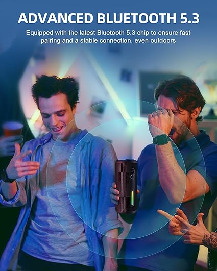 【Portable Speaker 30H Playtime&Powerful Bass】OHAYO bluetooth speakers are small in size, with a 5200mAh battery capacity, providing playtime of up to 30 hours (varies by volume level and audio content).The portable bluetooth speaker features an in-house tuned digital signal processor that analyzes low frequencies to intensify the song’s bass in real-time. 【IPX7 Waterproof&Rugged Design】Being IPX7 waterproof, the OHAYO wireless bluetooth speaker is protected against rain, spills, and splashes, and can even survive submersion in up to 3.3 feet of water for up to 30 minutes. Engineered to withstand bumps and drops, it is more durable than others and compact enough to hold. Perfect for taking to pool parties, beach parties, barbecues, biking, hiking, camping, etc. 【Strong Bluetooth 5.3 Signal】OHAYO wireless bluetooth waterproof speaker can connect to devices from up to 66 feet away, even in difficult conditions without signal disturbance. The bluetooth 5.3 chip easily reads music playlists and connects to any device such as smartphones, PCs and laptops. It supports TF card and AUX, making it a great wireless bluetooth speaker for travel, party and home. 【True Wireless Stereo 】The speaker delivers surprisingly loud and well-balanced sound through 2 drivers and our proprietary technology. Enjoy up to 24W of room-filling sound with punchy bass, strong midranges, and crisp highs. Pair 2 speakers together via bluetooth to play the same music in perfect sync, doubling the volume and creating an immersive stereo sound experience. It is your perfect partner for playing games, listening to music and watching movies. 【RGB Colorful Light Show】The wireless bluetooth speaker with light is not only a speaker but also a unique night theme light, providing different color-changing themes. Using OHAYO bluetooth speakers, you get a totally reimagined rainbow light show that pulses, phases, and shines to the beat of your music. While you enjoy music, the gradient lights truly bring a party atmosphere. 【A Great Gift Choice】 OHAYO speakers not only have excellent sound quality but also feature an exquisite and fashionable design that is very creative. These speakers make perfect gifts for men, women, yourself, teenagers, girls, boys, mothers, fathers, friends, teachers, and more on Christmas Day, New Year, Valentine's Day, birthdays, Father's Day, Mother's Day, the school season, graduation season, and other occasions.