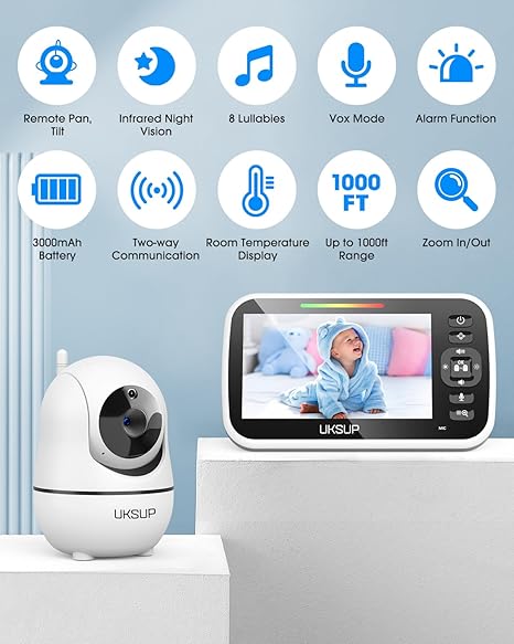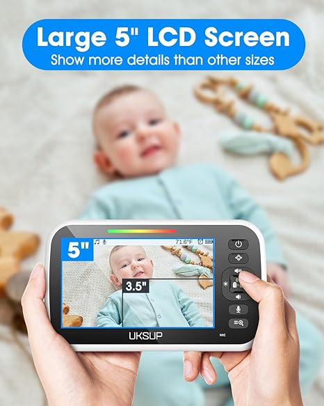 Large 5” LCD Display & Pan-Tilt-Zoom: The large 5” LCD video baby monitor display provides a clear, safe view of the baby. Enjoy the convenience of remote control with remote pan 355¡ã/ tilt 120¡ã and 2x zoom at a range of 1000 feet. When you are not convenient to take care of baby, using the camera you can easily observe the baby's status and fully transmit it to you, making you feel like you are with your baby at all times. High Capacity Battery & VOX Mode: Simply plug and play in camera and monitor to use this POMEWY baby monitors. We use 3000 mAh battery and VOX mode for auto-activation of the monitor based on the sound of your baby. 30Hr Battery Life in VOX Mode, 10-Hr With Screen On. The Parent Unit powered by rechargeable battery gives you full mobility in the house. The baby video monitor is the best assistant for new mothers. Infrared Night Vision & Room Temperature: Provided with clear infrared night vision, the baby monitor can display the state of baby's sleeping even after turning off the light. The built-in temperature sensor on the baby camera will send alert to the parent unit. Lets you adjust a comfortable temperature of living environment for your baby in time. Expand up to 4 camera units per monitor unit and you can switch your camera on parent monitor get more view look. Two-Way Talk & 8 Soothing Lullabies: This video monitor baby camera is equipped with an advanced, high-sensitivity microphone and speaker for clear, two-way audio talk allowing you to easily communicate with your baby. Sometimes your baby just needs to hear your voice for you to talk back in time. 8 soothing lullabies soothe your baby when they crying, making your baby feel peaceful in an instant. Privacy and Security Assurance & Feeding Alarm Reminding: You can set the time on alarm to remind you it's time to feed your baby now. The monitor is without WIFI and any APP, using FHSS technology for secure internal 2.4GHz channel transmission, it is impossible for others to spy on your privacy through the monitor, you can stream live at home without any problems.