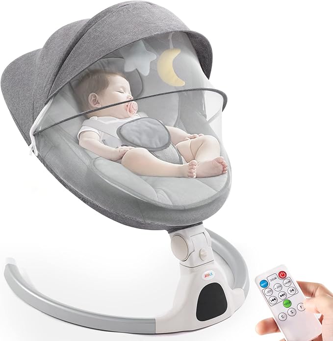 5 Amplitudes for Baby Swings for Infants: Jaoul electric baby swing is finished with 5 different swing amplitudes. To better protect your newborn baby's safety, the swing level between each amplitude is designed to be a very gradual difference. You could adjust the settings to find the swing range and frequency that your baby likes. 3 Grades of Height Adjustment: Ergonomic 25 ° spine tilt design, the Jaoul baby swing can take good care of the baby's spine development. Three different tilt patterns to meet the needs of different periods. 3 seat positions allow your baby to sit for eating, lie down for resting, or recline for playing. 3 Timing Settings Baby Swings: In order to save your time and energy, we have designed a 3-stage timing function. You are convenient to set the time to 8 minutes, 15 minutes, or 30 minutes with one button. Not only the baby becomes more peacefully, but the parents also feel more worry-free. Bluetooth Enable & Touch Screen/Remote Control Operation: Features 10 preset lullabies,auto-off timer design, Bluetooth and USB connectivity options are available, and you can play the music whatever you want. This thoughtful design allows parents to have their own space and free their hands. 5-Point Harness & All Seasons Usage: 5 point harness will make your baby feel safe, and a soft seat will let your baby feel comfortable. Super soft, modern-inspired fabrics which are fully removable and machine washable. The Mesh Fabric and the ultimate comfort Seat Pad are separated, so you can use them together or separately for different season needs.