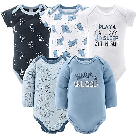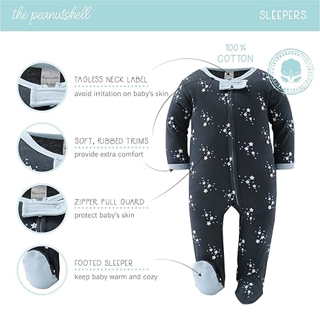 100% Cotton Imported 30 Baby Boy Essentials Must Haves - This adorable gift set has all the clothes and linens you need for a new born baby boy. It includes 3 short sleeved and 2 long sleeve bodysuits, 2 footed sleepers, 4 beanies, 4 pairs of pants, 4 pairs of socks, 4 pairs of scratch prevention mittens, 4 burp cloths, and 3 terry feeding bibs. Soft 100% Cotton Baby Boy Clothing - Knit cotton is the top choice of many parents for its cozy, breathable qualities. You’ll love these soft, 100% cotton baby clothes. You can also use the bodysuits as pajamas or daytime clothes Mix & Match - This cute baby gear set is perfect for winter, spring, and summer, and fall. The hats and mittens are a great way to keep your child warm no matter what the temperature is outside. These pieces are also great for layering under coats, winter suits, and blankets. If it’s summertime, the bodysuits work great on their own as an outfit Perfect Baby Shower Gift - Offer this adorable set as a baby shower gift or to welcome a baby home from the hospital. Containing an assortment of baby clothes and necessities, this set is sure to be appreciated by new parents Top Parenting Products Award Winner - The Peanutshell Layette is the perfect starter set for new parents. You can even place it in a basket or hamper for a present they’ll never forget. There’s no better way to prepare for a little one’s arrival than stocking up on the basics. Since they’re newborn sizes, they’re perfect for welcoming home brand new babies