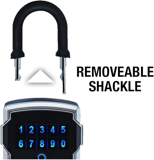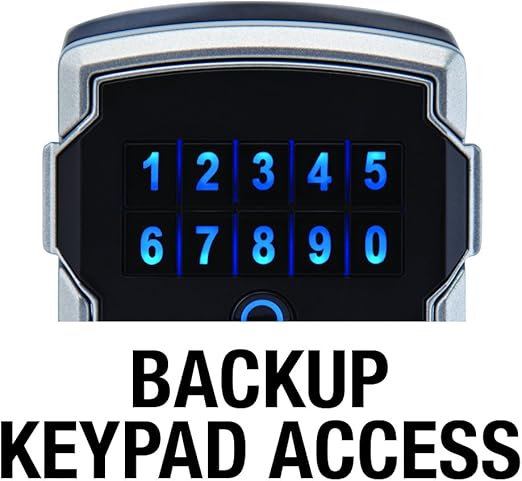 For indoor or outdoor use; portable lock box is best used for key and access card storage; large internal cavity allows secure storage for multiple keys; weather resistant to -40°. Schedule access now or in the future. Share temporary or permanent access via Bluetooth or keypad code with invited guests (Wi-Fi connection is not required to operate); Monitor activity, and receive tamper and low-battery alerts Ideal for use on Airbnb and VRBO vacation rental properties, unmanned remote locations, and real estate Master Lock Vault Home and Enterprise Apps are designed for personal use, supporting up to 10 locks. Can be upgraded to Master Lock Vault Enterprise business platform, and integrated with ShowingTime and BrokerBay scheduling management 3-1/4 in. wide lock body, 13/32 in. diameter shackle with 1-13/16 in. length, 1-13/32 in. width; Internal dimensions 3-39/64 in. height, 2-1/2 in. width, 1-7/64 in. depth; Replaceable CR123A battery (included); Lock box is not intended to securely fit key fobs inside For answers to frequently asked questions, troubleshooting, and technical support, see document titled User Guide in the technical specifications section of this page